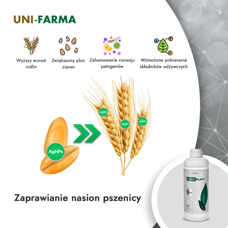 Dzięki tym właściwościom nanosrebro jest doskonałym komponentem zapraw nasiennych, wspierając zdrowy rozwój pszenicy i wysokie plonowanie!